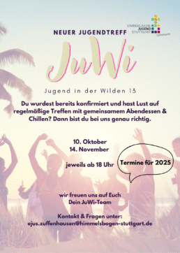 Im Evangelischen Jugendwerk Zuffenhausen bieten wir für jede Altersgruppe spannende Angebote und Aktionen: Vom Babytreff für die Kleinsten über Weihnachtsbasteln für Grundschulkinder bis hin zu unserem Jugendtreff „JuWi“ ab 14 Jahren. Mit unserem Trainee-Programm schaffen wir außerdem ein Bildungsangebot für alle, die sich ehrenamtlich engagieren möchten. Ergänzend dazu betreuen wir im evangelischen Waldheim Schlotwiese jeden Sommer bis zu 130 Kinder.